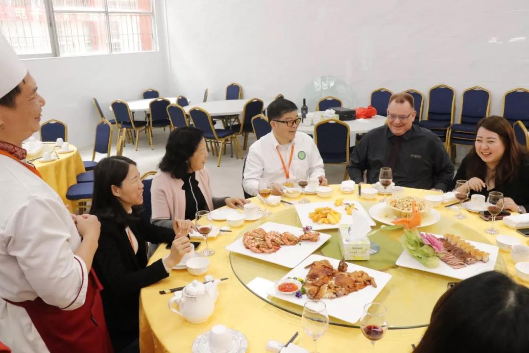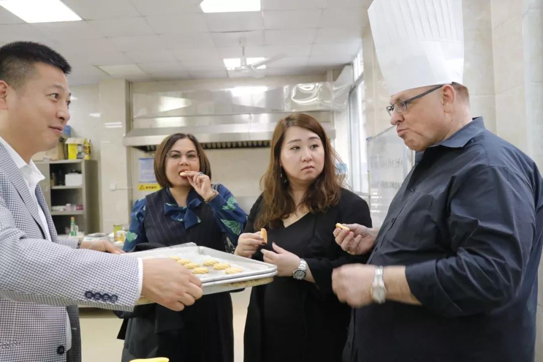參觀過程中,來賓們對我校中餐烹調(diào)及面點制作課堂表現(xiàn)出強烈的興趣,Mr.Stuart表示,這樣的課堂氛圍非常好,學(xué)生以小組為單位,大家相互協(xié)作,凝結(jié)智慧,制作出的作品都是獨一無二的。
