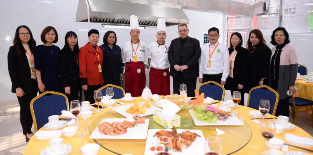 12日上午,包括澳大利亞政府貿(mào)易投資委員會商務(wù)官員周覓瓊、EHI校長Mr.Stuart、首席運營官Ms.Bubpa、亞洲區(qū)域市場經(jīng)理周敏怡、中國項目經(jīng)理歐陽云在內(nèi)的一行來賓便早早抵達(dá)我校,在我校領(lǐng)導(dǎo)及老師的陪同下參觀了烹飪專業(yè)各大實訓(xùn)室。