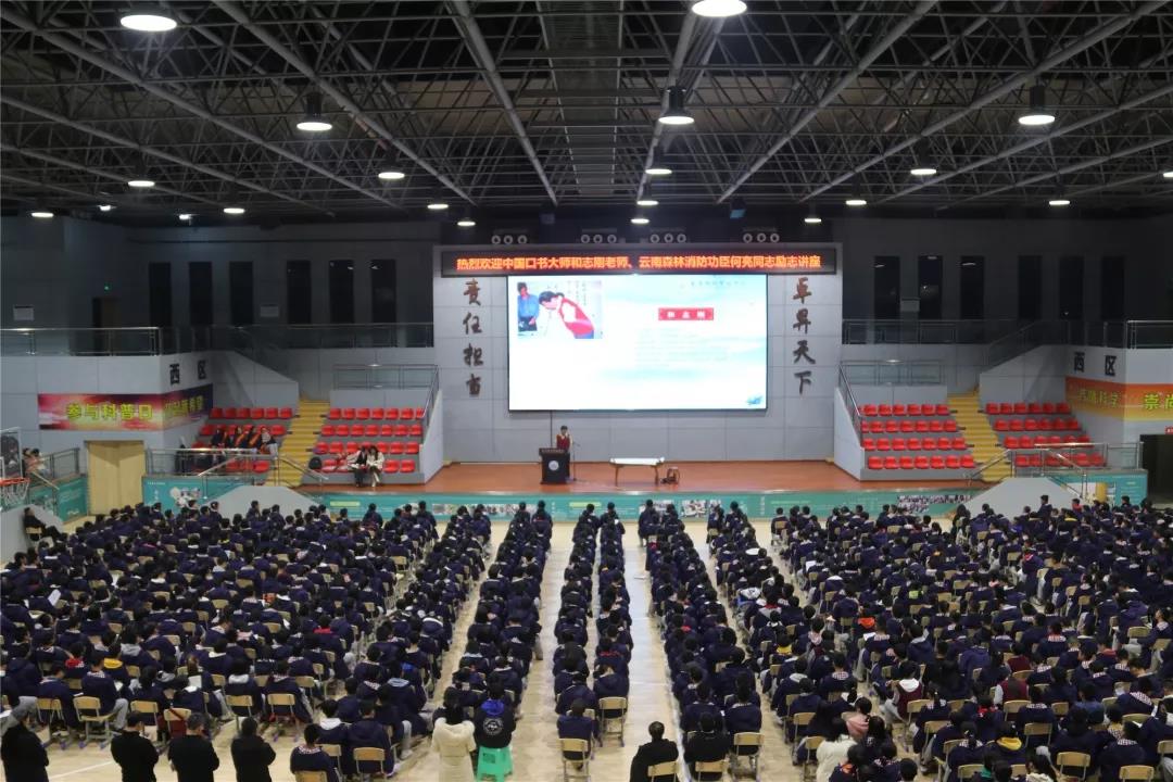 12月15日晚,衡川的體育館內(nèi)燈火通明,座無虛席,1700余名衡川師生正享受著一場精神的盛宴——中國口書大師和志剛、云南森林消防功臣何亮走進(jìn)“雙百講堂”,與衡川師生分享其勵(lì)志人生。